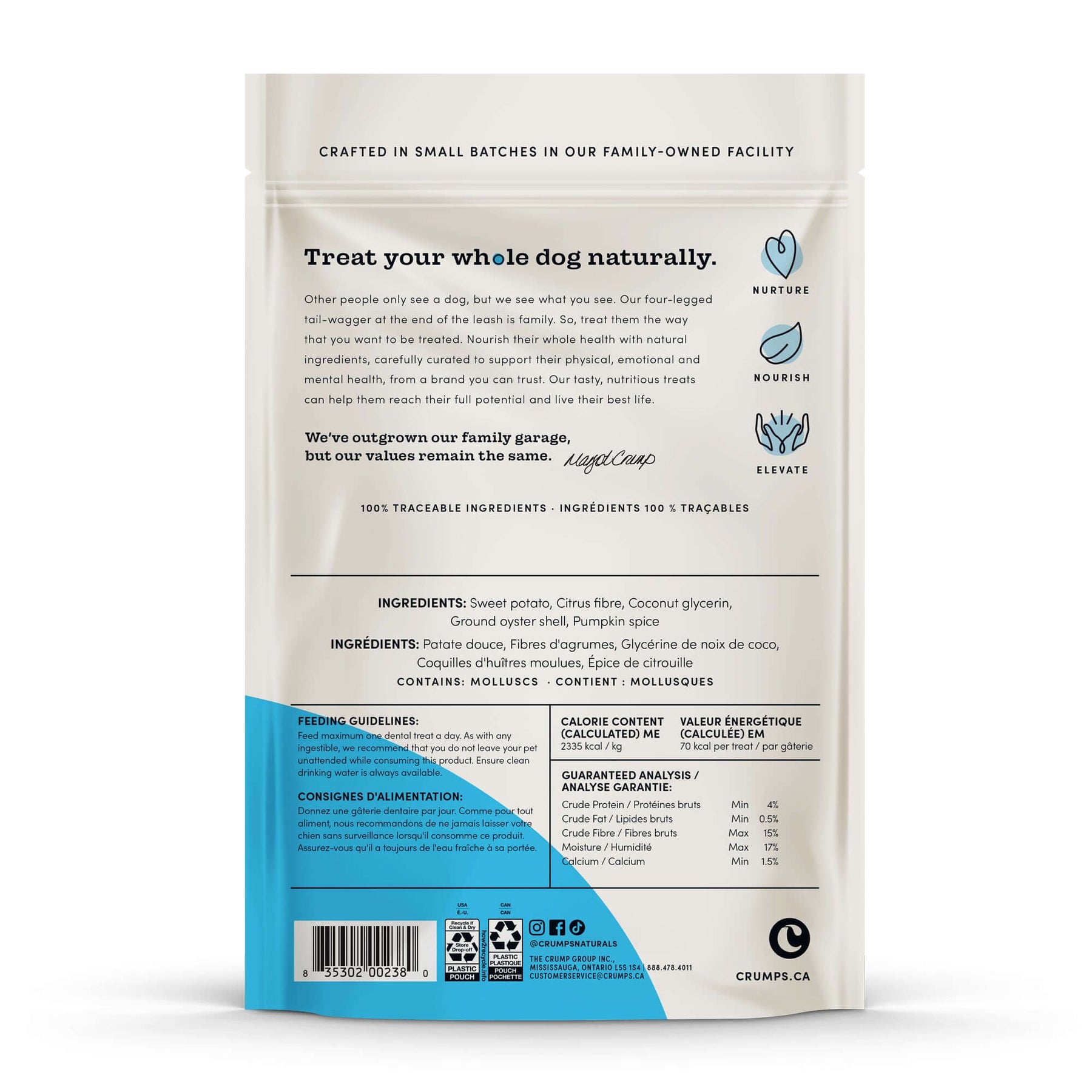 Newly reformulated to provide a less brittle, more flexible texture to ensure safe chewing - no sharp edges! A new floral shape was also introduced to boost the oral care benefit by better fitting around each tooth.